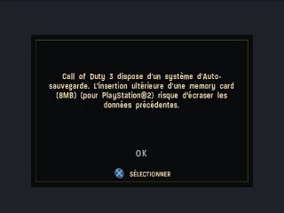 Call of Duty 3 : En Marche vers Paris est un jeu de tir à la première personne sur Playstation 2. Toujours au coeur de la Seconde Guerre mondiale, en 1944 pour être précis, lorsque l'invasion allemande commence à avoir du plomb dans l'aile, c'est à vous qu'il revient de lancer l'assaut pour repousser l'ennemi. Outre la campagne solo, il est également possible de s'essayer au multijoueur.