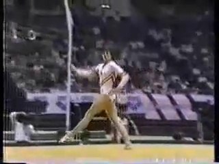 Camelia Voinea, from Romania, on floor event finals at the 1986 World Cup.