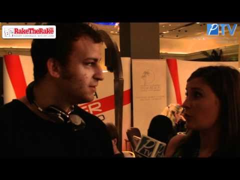 Sorel Mizzi talks to Andrea Silvers just before pulling up his seat at the EPO 2010 event at the Palm Beach Casino in London.