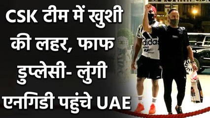 सीएसके के फैफ डुप्लेसी और लुंगी एनगिडी यूएई पहुंच चुके हैं। सीएसके ने दोनों खिलाड़ियों की तस्वीर शेयर कर इस बात की जानकारी दी है। फैफ हाल ही में बेटी के पिता बने हैं। उन्होंने अपनी बेटी का नाम जोए रखा है। बेटी के जन्म के बाद वह अपनी आईपीएल टीम के साथ जुड़ गए हैं। अभी इन दोनों खिलाड़ियों को अपना जरूरी क्वारंटाइन पीरियड पूरा करना होगा।