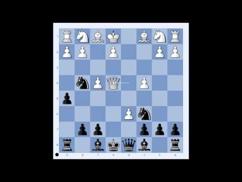 Rieol vs Toth - Tirgu Mures 1948 Budapest Gambit 1. d4 Nf6 2. c4 e5 3. dxe5 Ng4 4. Qd4 h5 5. f4 d6 6. exd6 Nc6 7. Qe4+ Be6 8. f5 Bxd6 9. fxe6 Qh4+ 10....
